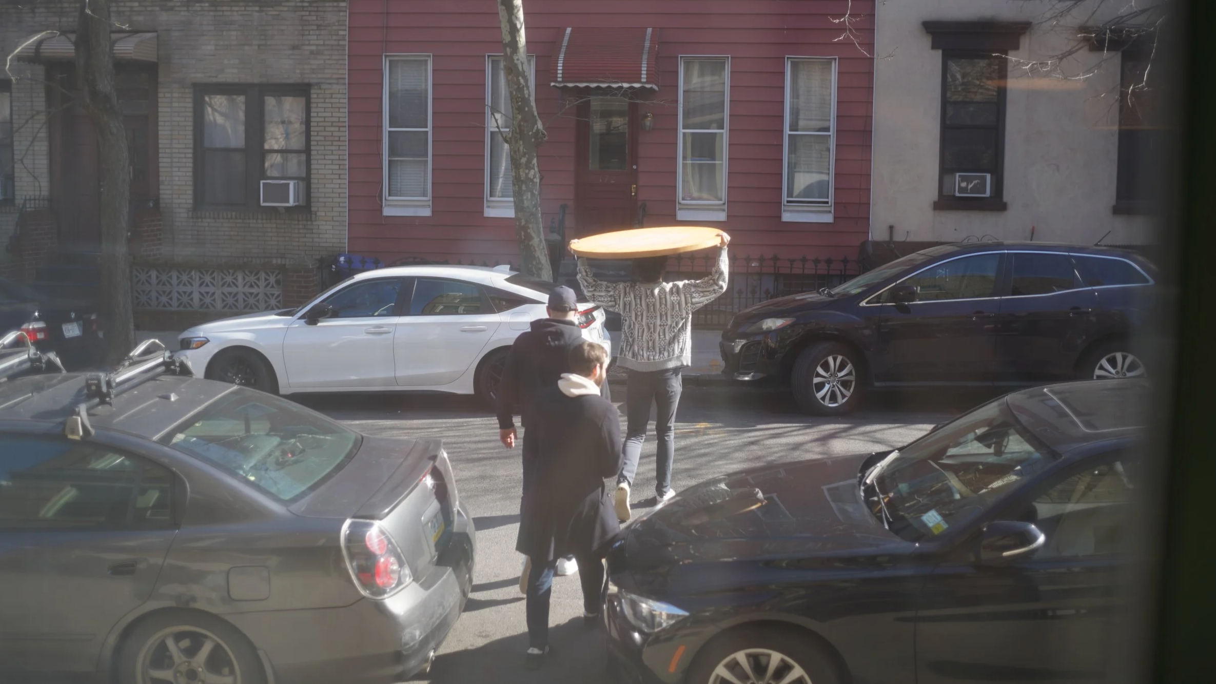 Floating shelf as breakfast nook in narrow kitchen (found on the street NYC)