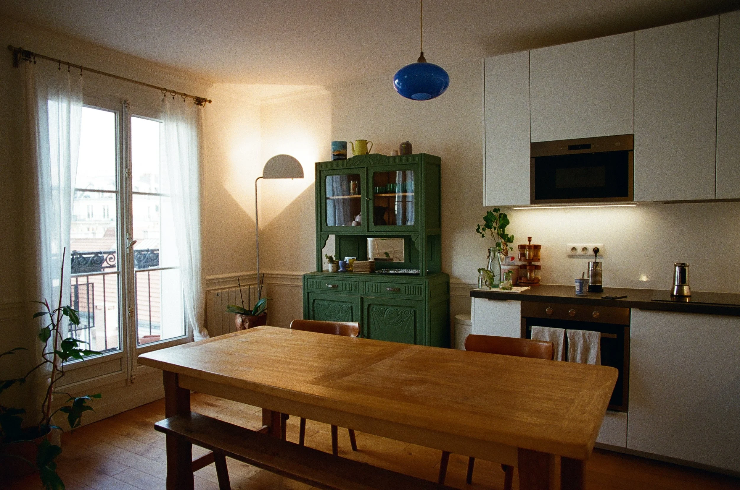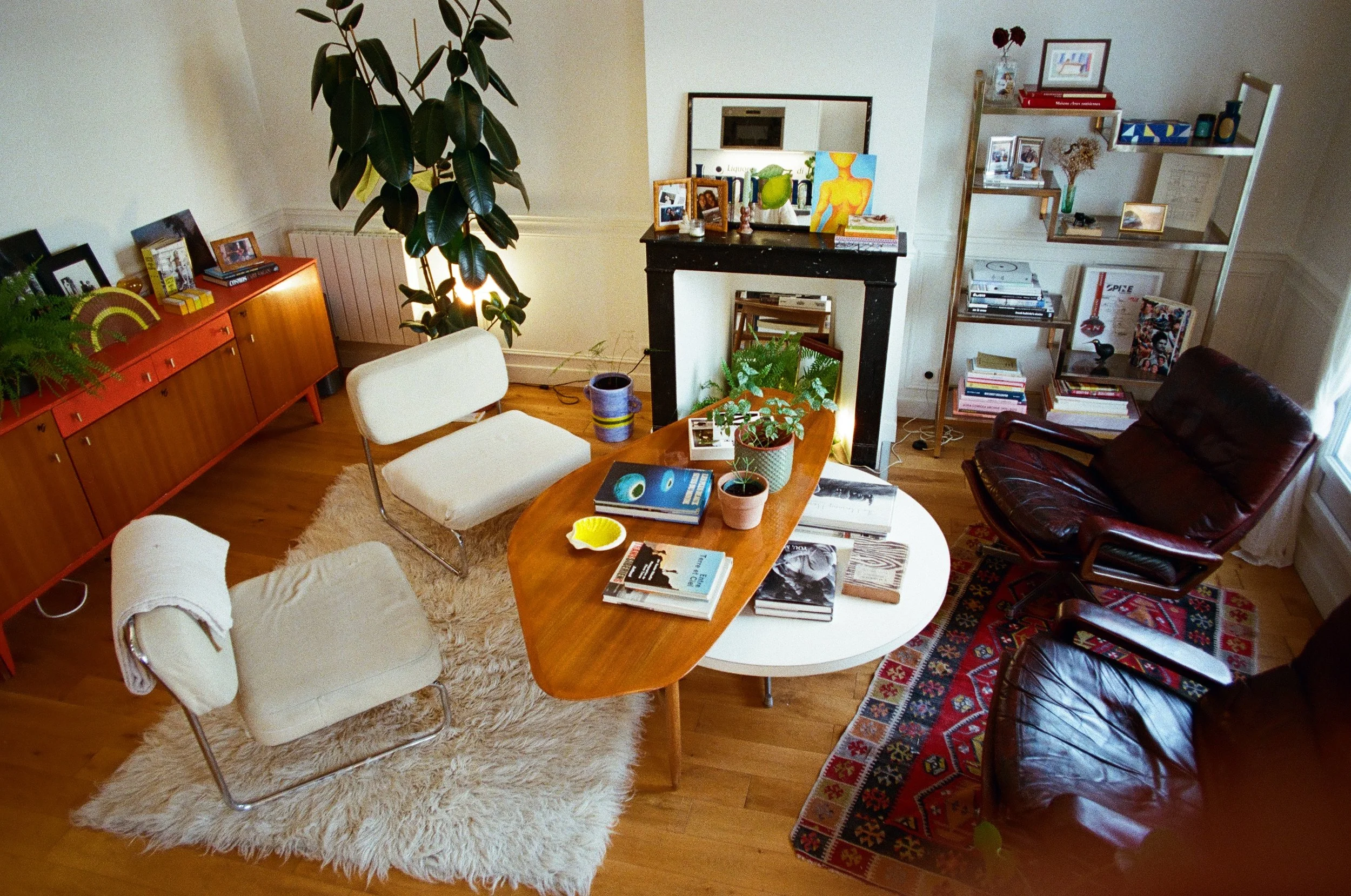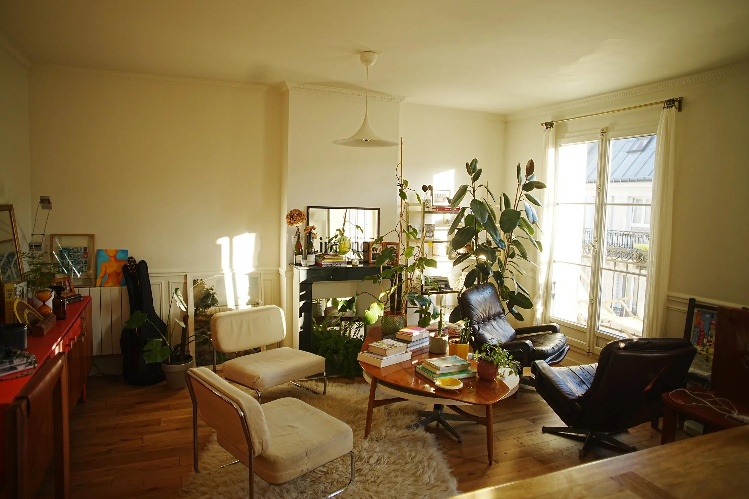 Every piece in my home is a used good; from the furniture, to the lighting, to the carpet. The guiter, books, picture frames and plant pots (and some of the plants) came from leboncoin. The furniture I sourced from across France and western Europe. The Tizio lamps came from a hotel closing. Each piece holds a special story, memories of mine and others, and avoids new objects being produced and forests cut down. Object by object, choice by choice, your home becomes an extension of you: your values, your esthetic, your dreams.